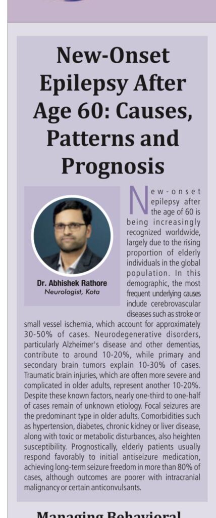 His contribution focused on the critical topic of “New-Onset Epilepsy After Age 60,” demonstrating his command over complex, age-related neurological challenges. This achievement serves as a testament to the advanced level of care available to patients throughout Rajasthan.